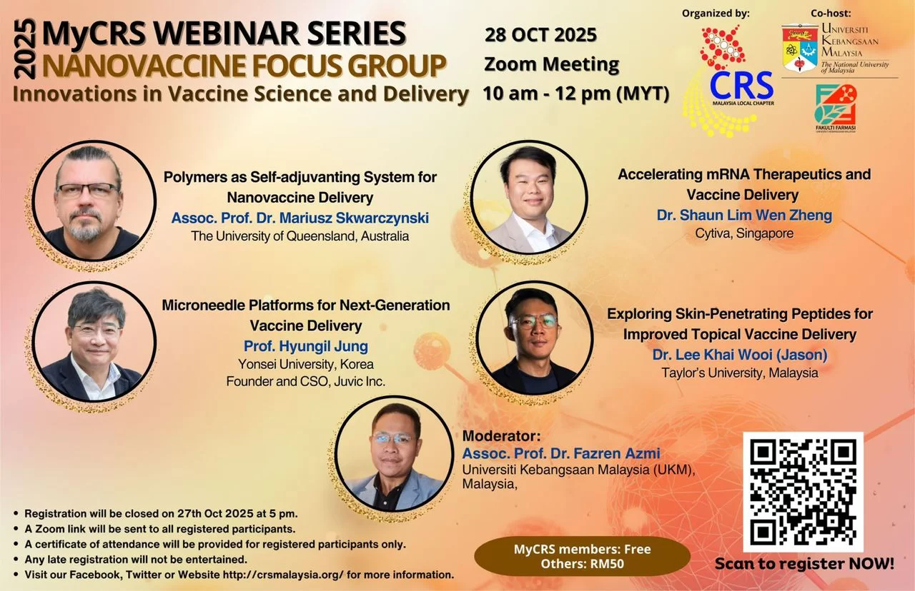 Over the past ten years, MyCRS has emerged as a cornerstone for scientists, academics, and industry professionals to converge, share insights, and explore advancements in drug delivery systems. As Malaysia continues to position itself as a hub for pharmaceutical research, MyCRS has played a pivotal role in fostering networking and collaboration within the research community of drug delivery.
